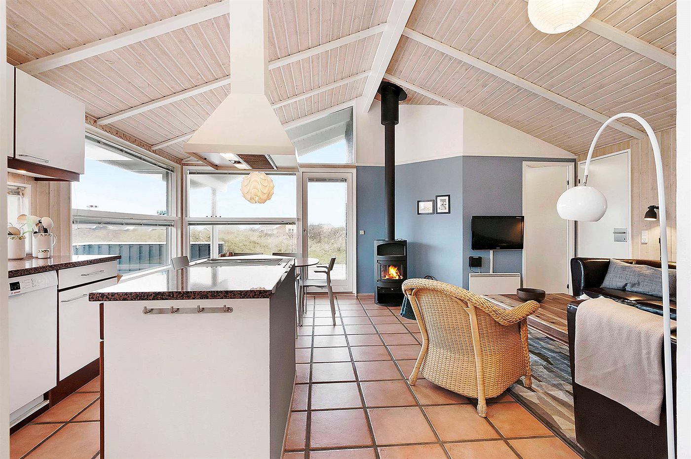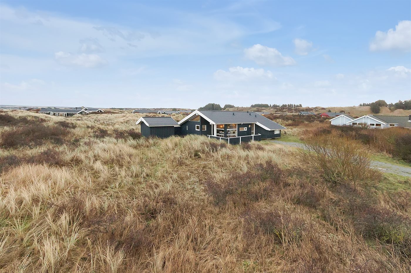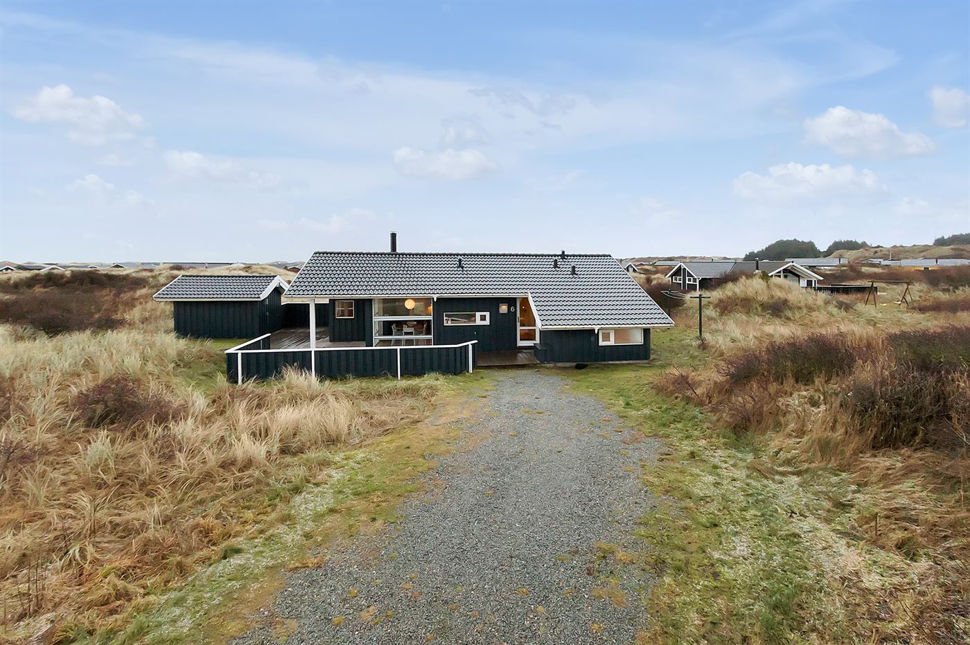 Lækkert og attraktivt feriehus på 89 kvm med plads til 8 personer, beliggende på en stor og let kuperet klitgrund med kun 300 meter fra Vesterhavet. Området er roligt og naturskønt med udsigt til klitterne og med kig til havet fra huset. Der er en dejlig træterrasse på 59 kvm, hvoraf de 9 kvm er overdækket samt et tilhørende skur på 10 kvm, hvor havemøblerne samt Weber grill er opbevaret.Ferieboligen er opført i 1998, bygget i træ og er i 2016 renoveret.