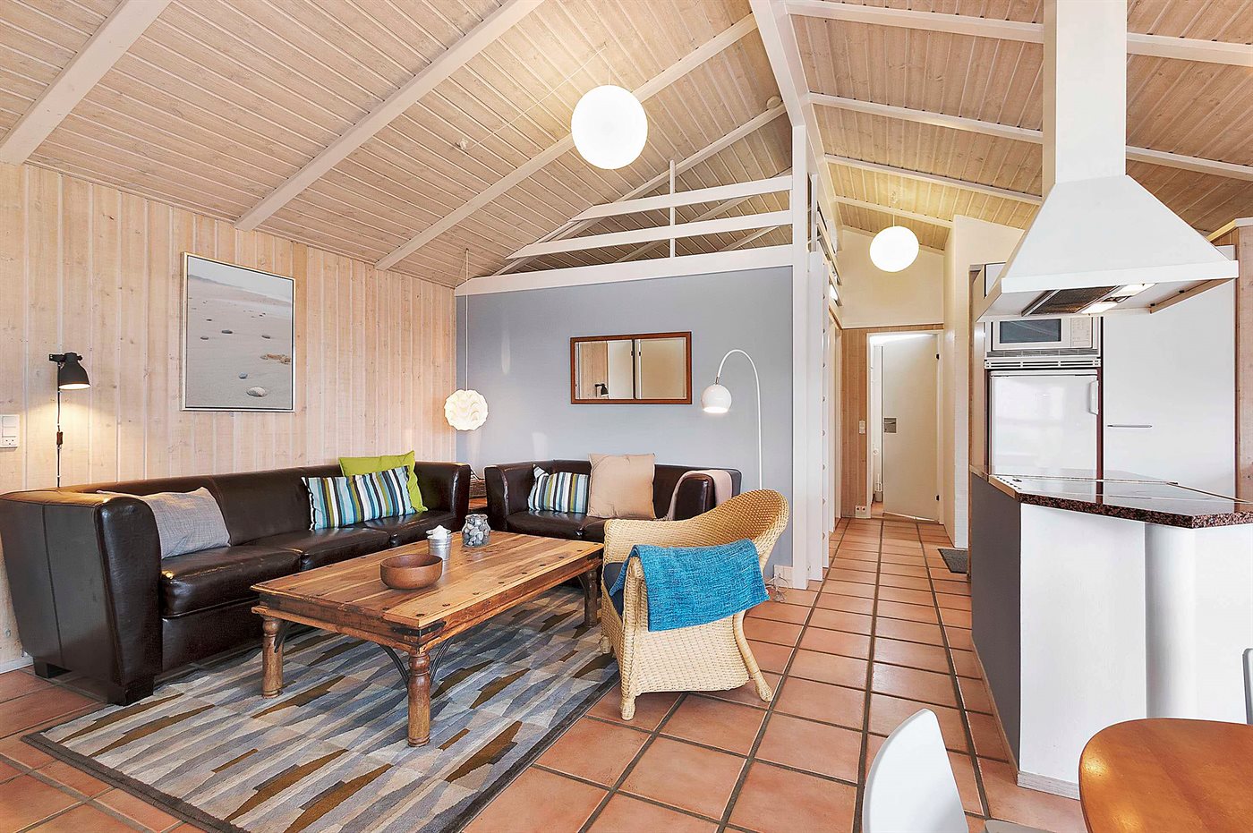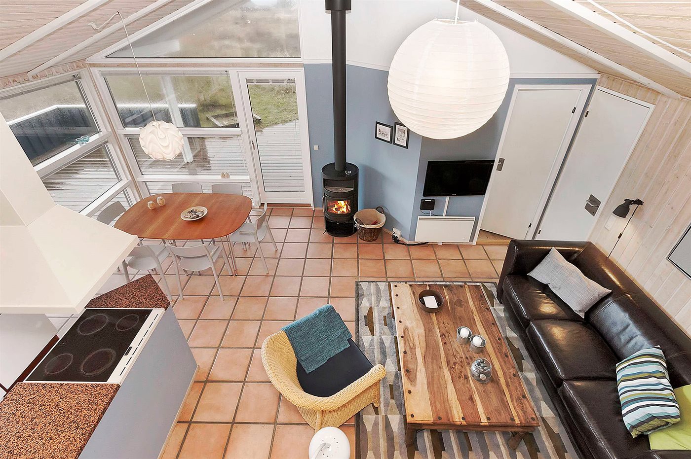 Stuen er pænt indrettet, flot møbleret og indeholder brændeovn, TV med DVD afspiller. Der er mindst 4 danske kanaler, 1-3 svenske og norske kanaler samt min. 4 tyske kanaler.