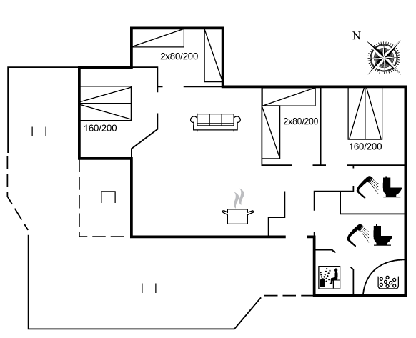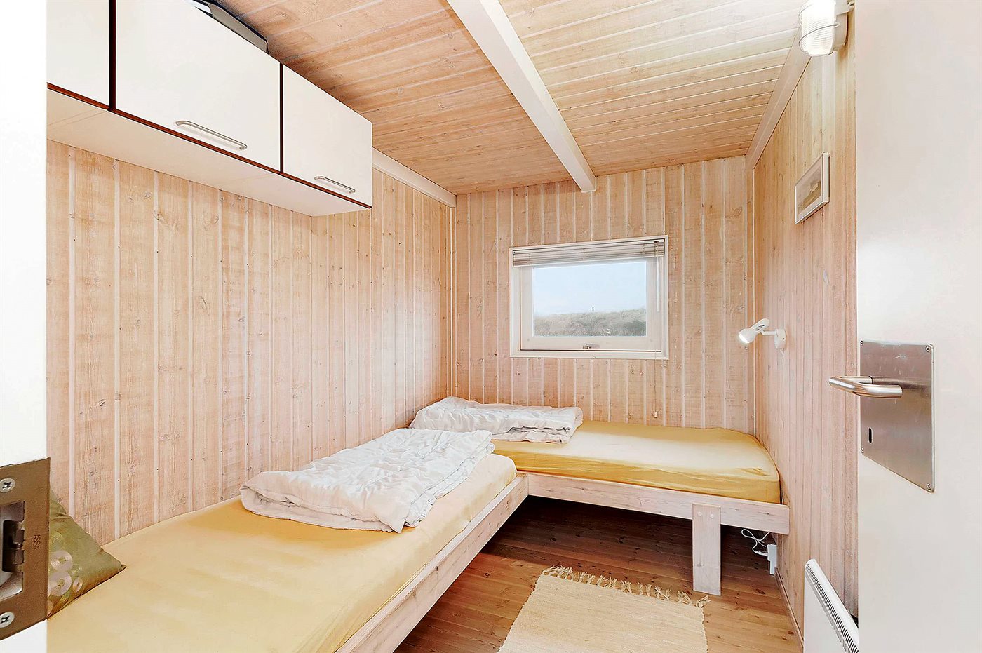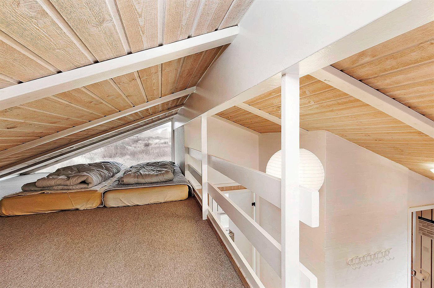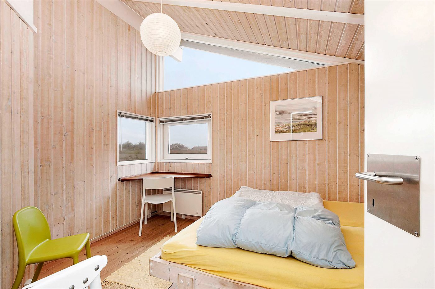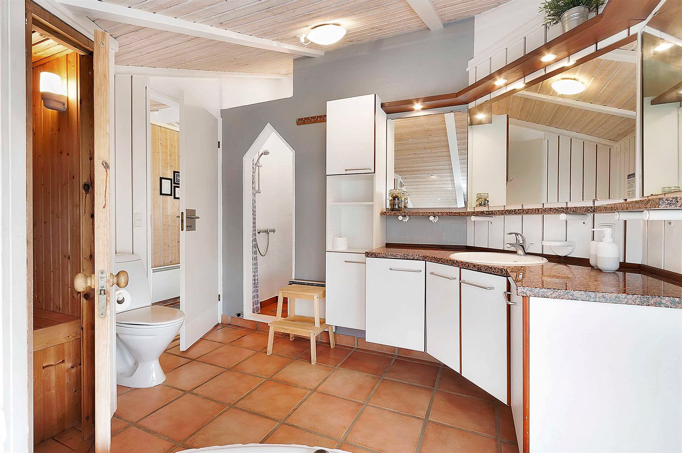 To værelser med dobbeltseng og to værelser med hver to enkeltsenge. Huset er indrettet med to pæne badeværelser. Det ene med en dejlig 4 pers. spa, sauna og bruseniche og det andet med bruseniche. På begge badeværelser er der gulvvarme.Der er trægulve i værelserne og klinkegulv med gulvvarme i gang, køkken og stue samt